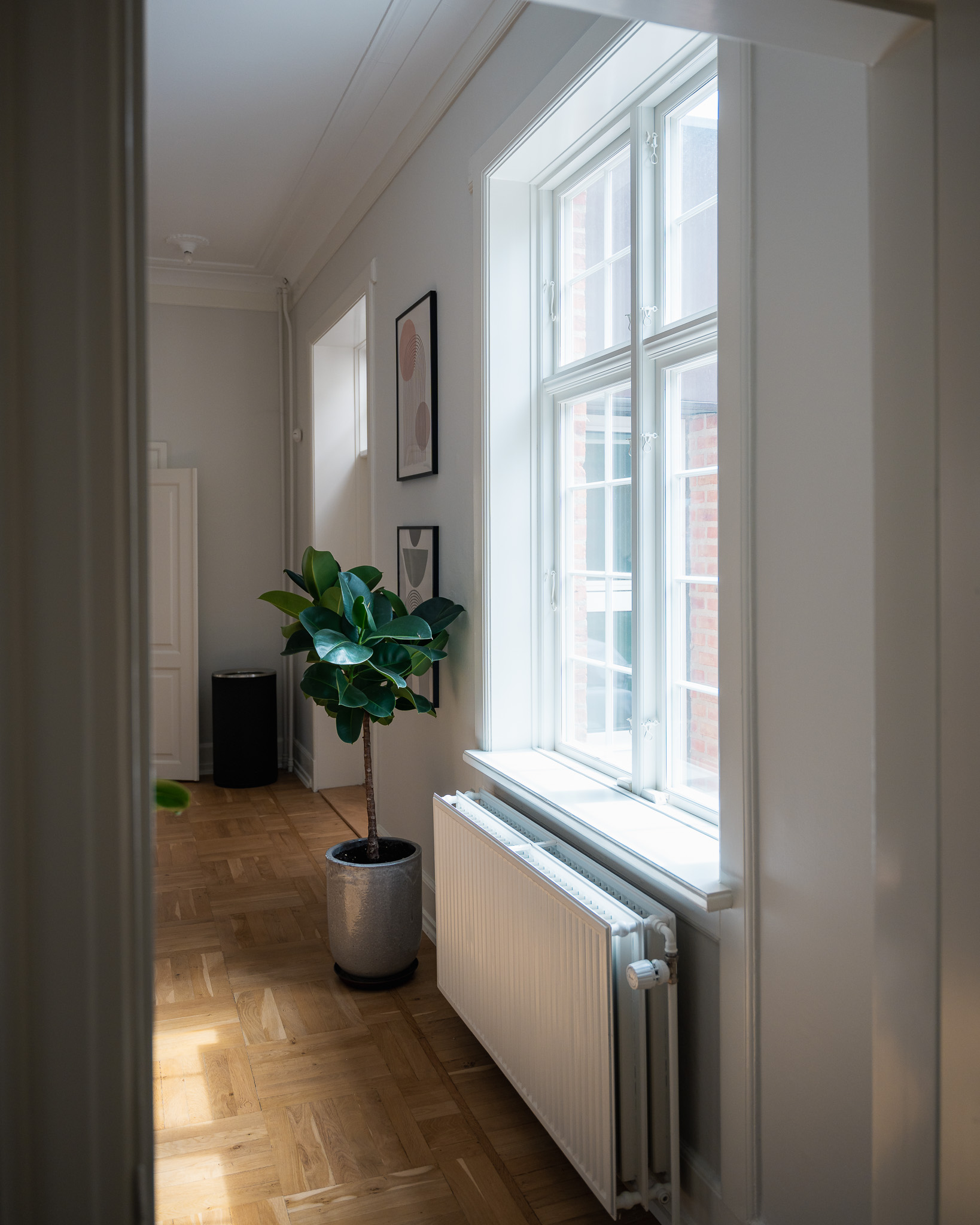 “Ejendommen får et helt andet udtryk med de tynde sprosser. Også indvendigt er profileringen som i gamle dage med vandrette rammer. Linolie Døre & Vinduer rammer sømmet lige på hovedet her,” siger Anders Thomsen om resultatet.